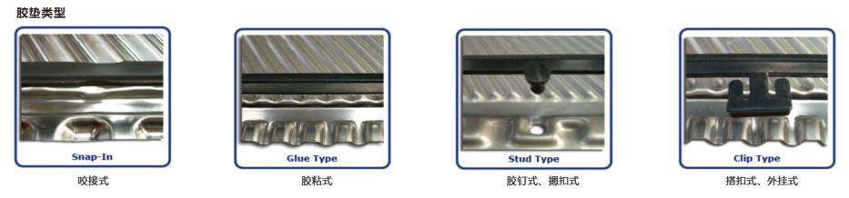 The ice plate heat exchanger gasket is of different types such as snap-in type, adhesive type, snap-on type, and external type, as shown in the following figure;