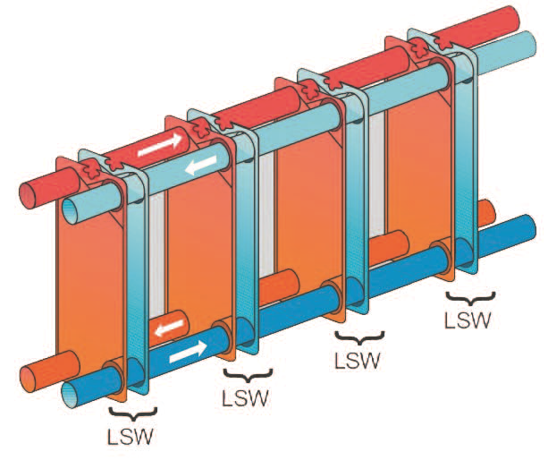 江蘇冰克LSW系列半焊板式換熱器在工作過程可以保證流道間全部的隔離,臨界媒質在焊接密封后的流道中流動,將熱傳給另一側的普通媒介,沒有這種嚴格隔離設計,許多工業(yè)過程將無法實現(xiàn)。